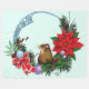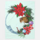 Mignonne souris brune sur une couronne de Noël. Des ornements, des poinsettias et des noeuds celtes bleus travaillent sur la couronne de Noël.