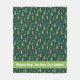 Une couverture en toison Wintery au design festif. La couverture est ornée d'un arrière - plan vert décoré de divers éléments sur le thème des vacances, comme des arbres de Noël, des sucres de canne, des étoiles et des whippets portant des chapeaux de Père Noël. Au bas de la couverture, il y a une bannière verte avec un texte blanc qui dit : "Whippet Snug : Chiens rapides, Bouddles confortables !"