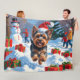 Couverture Polaire Yorkshire Terrier en neige avec Casquette de Noël