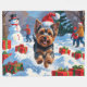 Un Yorkshire Terrier vivant borde la neige, portant un casquette de Noël rouge vif avec un esprit de fête joyeux. Cette scène d'hiver festive met en valeur le charme et l'élégance ludique du Yorkie, entouré par la magie de la saison. Un design chaleureux qui saisit à la fois la beauté de l'hiver et la personnalité de cette petite race bien-aimée.