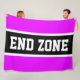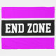 Cette conception sportive de football présente un texte en gras END ZONE à l'intérieur d'une large bande noire centre de course surlignée en blanc contre rayures extérieures roses brillantes. Le texte peut être personnalisé.