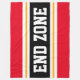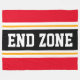 Cette conception sportive et sportive présente du texte en gras END ZONE à l'intérieur d'une large bande noire surlignée avec deux bandes de course blanches et jaunes contre des bandes extérieures rouge vif. Le texte peut être personnalisé.