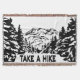 Illustration monochrome avec vue montagne et dessin en bois d'hiver enneigé en style boisé