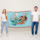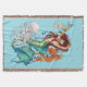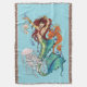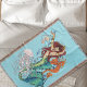 Sirène aux cheveux rouges portant des bijoux en or. La sirène a une queue turquoise, verte et bleue. Tout autour de l'émeraude se trouve un hippocampe, des coquillages de méduses et une bouteille d'eau, le tout dans un décor bleu