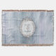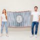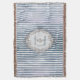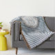 La couverture de style vintage est conçue avec des rayures d'aquarelle Moire, centrées avec un médaillon floral baroque. Personnalisé avec des noms (prénom et nom ou noms d'un couple). Les rayures bleu-gris et l'aspect vintage créent une couverture chic pour une chambre à coucher ou un salon.