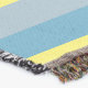 Des rayures bleues, vertes, blanches et jaunes jettent la couverture.