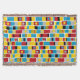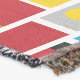 Un design composé de rayures avec bandes peintes à la main, blocs et taches de couleur dans les tons de rouge, ambre, or profond, bleu, gris noir et blanc. Inspiré de totems peints.
