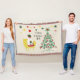 Un ours en peluche mignon et câlin, assis sur une chaise, portant son casquette de Noël et tenant une boîte cadeau. Il se tient à côté d'un sapin de Noël orné de décorations de Noël et d'étoiles colorées. Style vintage classique. Personnalisez-le avec votre monogramme.