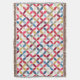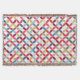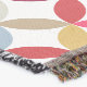 Un quadrilatère circulaire à répétition découpé style projette dans des tons chauds de rouge, marron, gris et bleu sur un arrière - plan blanc par Sarah Trett. Très bien situé dans une chambre, un salon.