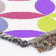 Une répétition de quartiers circulaires découpés style projeté dans le violet clair, vert citron, gris et bleu, par Sarah Trett. Très bien situé dans une chambre, un salon.