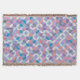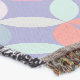 Une répétition de quartiers circulaires découpés style à motif jeté dans les couleurs violettes pastel violet, rose, corail orange, aqua et bleu, par Sarah Trett. Très bien situé dans une chambre, un salon.