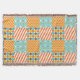 Le rétro motif inspiré de patchwork comportant de plus petits motifs aiment le chevron, les rayures et le pois. Dans cette conception vous pouvez également voir des couleurs comme l'orange, le bleu d'aqua, le jaune de moutarde, le brun et le blanc.
