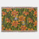 Couverture Robins et fleurs de lys, orange et vert foncé