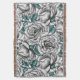 Beau motif numérique peint à la main, roses blanches aux feuilles bleus.