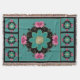 L'élégante palette de design et de couleurs de cette couverture tissée fait écho aux décors de la salle Parlor des Elites Rockefeller's, Roosevelt's et Broadway au début du XXe siècle. Le motif floral dans les tons bleu-vert, framboise crémeuse, noir, crème & or est monté sur un ton sur ton japonais Faux Quilt Motif créant un look à la fois ancien et nouveau.