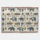 Bold tribal rhino pattern blanket featuring distressed black rhinoceros silhouettes paired with geometric mudcloth-style motifs in warm tan and charcoal on a textured beige background. A rugged, earthy design ideal for safari enthusiasts, boho decor lovers, and wildlife-inspired style fans.