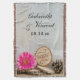 Personnalisez le charmant style boisé Rustic Pink Daisy Mariage Woodland Jetez avec les noms de la date de la mariée et du marié et la cérémonie de mariage pour créer un cadeau de conservation durable. Cette couverture nuptiale à thème de bois de plein air chic de pays comprend une photo fleurie améliorée numériquement pittoresque d'une fleur de marguerite rose et une tranche de bois naturel avec le mot LOVE brûlé dedans avec un burlap et un arrière - plan satin blanc.
