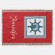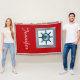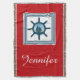 Design à thème nautique avec décoration de scène de voile en carrés rayés sur arrière - plan rouge
