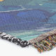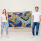 Une interaction dynamique de bleus tourbillonnants et de jaunes vivifiants captive l'oeil. La composition ressemble à une représentation abstraite d'une nuit étoilée fusionnée avec des vagues océaniques. Les motifs complexes ajoutent de la profondeur, tandis que les éclats de rouge fournissent un contraste focal.