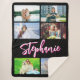 Une belle couverture Sherpa de grande taille violet clair. Customisez avec son nom pour créer votre propre cadeau personnalisé. Modifiez les tons d'ombre blanc et rose chaud ainsi que la couleur arrière - plan noire. Il y a beaucoup de beaux styles de script de calligraphie moderne à choisir. Six photos horizontales ou de paysage sont disposées dans un simple collage de grille pour elle.