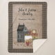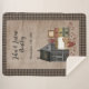 Cette couverture Sherpa rustique est la touche parfaite pour votre maison de campagne. Il y a une maison coloniale gris-bleuté avec une étoile au sommet, un pot de conserve rempli de petits pains de cannelle, une pile de boîtes primitives, un homme en pain d'épice, une image de coeur en étain perforé et beaucoup de vignes de canneberge rouge. L'arrière - plan est fait dans un tissu de lin à l'allure grungy avec une bordure noire et bronzée. Vous pouvez le personnaliser avec vos noms et la date de votre mariage (Grand cadeau mariage!), ou le changer seulement à votre nom de famille et la date établie. Si vous avez besoin d'aide pour la personnalisation, n'hésitez pas à m'envoyer un message ici sur zazzle.