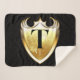 Cette couverture sherpa affiche la lettre T majuscule à l'intérieur d'un élégant décalcomanie de couleur dorée avec une police unique sur le panneau avant avec une sensation délicate et douce parfaite pour pique-nique, évènements en plein air, et douces lunettes d'hiver. Toutes les couvertures sont faites à partir de vison imprimé 100% polyester avec une impression sublimation de bord à bord et une couture robuste à double bord a Sherpa douce sur le dos avec une couleur off-white.