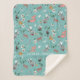 Couverture Sherpa Animaux bleus mignons paresseux, zèbre et oiseaux