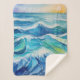 Couverture Sherpa Aquarelle peinture des vagues bleues