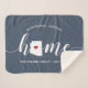 Montrez un peu de fierté de l'état d'accueil avec cette jolie couverture de lancer bleu rustique avec "home" en calligraphie blanche avec une carte silhouette de l'état de l'Arizona debout pour la lettre "O." Une illustration de coeur rouge à l'intérieur de la carte d'état complète la conception; vous pouvez changer la position du coeur à votre ville d'origine en ouvrant l'outil de conception et en faisant glisser la forme du coeur à votre endroit préféré. Personnalisez avec votre ville natale, votre nom de famille et votre année établie pour créer un cadeau parfait et mémorable de ménage ou d'ajout à votre nouvelle maison.