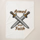 Cette couverture affiche les mots "Armé de Foi" dans un avant d'impression unique avec des lettres noires oranges encadrées d'un ensemble d'épées croisées au centre avec ce thème de citation basé sur la foi. Cette couverture est dotée d'une image vive sur un côté et de la Sherpa la plus douce disponible au verso, faite à 100% polyester et imprimée avec support sherpa ultra doux.