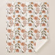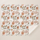 L'image montre un motif atypique de fleurs stylisées en tons d'orange et de brun chauds, entouré de feuilles vertes et de branches tendre. La répétition harmonieuse des éléments rayonne un climat d'automne calme qui transmet la chaleur et la nature. Il crée un sentiment de sécurité et d'équilibre esthétique.