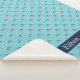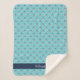 La couverture à thème du requin mignon comprend un motif de requins souriants nageant dans un océan bleu. Personnalisez avec le nom de l'enfant en blanc sur une bande bleu marine le long du fond.