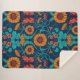 Couverture Sherpa Baies Art Nouveau en bleu et jaune