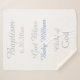 Élégant Baptême bébé garde une couverture de taille moyenne pour personnaliser avec les prénoms et le milieu du bébé en bleu, et Date du Baptême en argent. Baptême, Dieu béni, Enfant de Dieu est écrit en écriture argentée. Élégant petit bébé garçon hochet avec étoile bleue, look de parties scintillant et joli arc bleu perlé. L'amour est écrit en texte blanc à l'intérieur du bétail. Jolie couverture en toison pour bébé garçon, filou. REMARQUE : Selon la taille, vous pouvez ajuster la taille du Bébé en cliquant sur personnaliser et en appuyant sur le contrôle et le bouton d'augmentation pour augmenter en petits incréments (si un point d'exclamation d'avertissement apparaît diminution d'un incrément), et peut déplacer l'image et la position de l'amour à l'intérieur du bétail. Oeuvre et design graphiques d'origine © TamiraZDesigns.