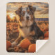 Découvrez l'ultime confort et compagnie avec notre couverture confortable et chaleureuse, avec un adorable berger australien au milieu d'un champ de citrouilles au coucher du soleil. C'est l'invitation parfaite pour se sentir à l'aise avec son ami furry et créer des souvenirs précieux ensemble.