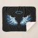 Couverture Sherpa Blue Glowing Angel Wings on black background