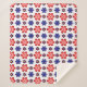 This thick cozy fleece blanket features a beautiful colorful floral pattern of blue, purple and red stylized daisies against a white background; perfect for adding a touch of retro cuteness to your home.