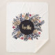 L'illustration est faite d'aquarelles et de gouache sur papier. Indigo, ocre et orange feuillage et fleurs avec un bonjour doré écrit à la main au milieu.