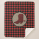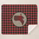 Cette belle couverture rustique de sherpa dispose d'un motif en plaid de buffle rouge et noir. Au centre se trouve une bannière en cercle bronzé avec une botte cowboy en silhouette rouge et noire assortie.