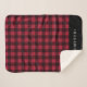La couverture rustique chic sherpa est ornée d'un motif classique en plaid de buffle rouge et noir. Personnalisez avec un nom ou un nom de famille en bas.