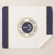 Capitaine personnalisé avec votre nom et votre nom de bateau logo nautique d'ancre sherpa couverture. Armoiries en cercle classique avec ancre et champs de texte en bleu marine, blanc et or sur un arrière - plan blanc.