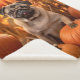 Profitez du confort et de la compagnie de votre hôtel grâce à notre couverture confortable et chaleureuse, qui présente un Carlin de couleur faun adorable au milieu d'un champ de citrouilles au coucher du soleil. C'est l'invitation parfaite pour se sentir à l'aise avec son ami furry et créer des souvenirs précieux ensemble.