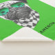 Ce design présente un portrait de carlin en verre et un foulard à damiers noir et blanc.