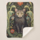 Couverture Sherpa Chat noir Art nouveau et fleurs rouges