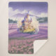 La couverture est une pièce charmante avec une image fantaisiste d'un château d'imaginaire dressé contre un riche champ violet. Il peut faire partie d'un ensemble cadeau de charme conçu spécialement pour les filles, combinant confort et imagination dans un bel ensemble