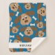Cette couverture de bébé bleue présente un collage d'un chien souriant avec de grandes oreilles et des os de chien sur un arrière - plan bleu foncé. Personnalisez cette adorable couverture avec le nom de votre enfant.