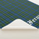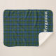 Le motif écossais Clan Ferguson (Fergusson) tartan plaid avec le texte de police blanc Old English superposé sur une couverture Sherpa douce.