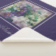 Belle vigne à floraison de clematis violet avec écriture vintage bordée d'un cadre argenté, avec texte modèle ci-dessous. Donne à une maison un style élégant, moderne et chaleureux.