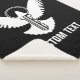 Colombe volante avec icône de clé simple. Texte personnalisé.