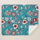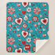 Couverture Sherpa Coquette, floral et coeur turquoise monogramme rou